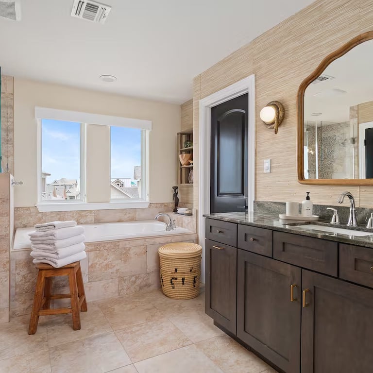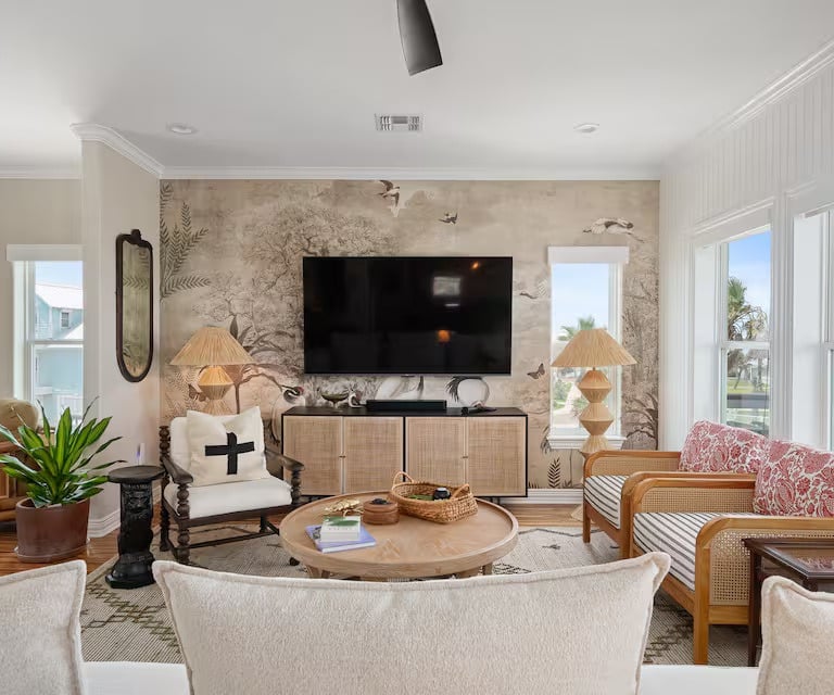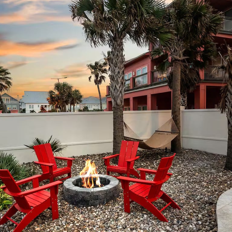 Prime Location & Access: Experience the best of Port Aransas with ease. Take your golf cart directly over our boardwalk to the beach—a 10-minute scenic ride leads you to the town center, while a 2-minute ride brings you to the lively town square of Cinnamon Shore for gourmet meals and live weekend music.