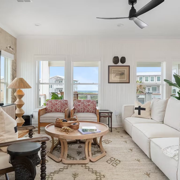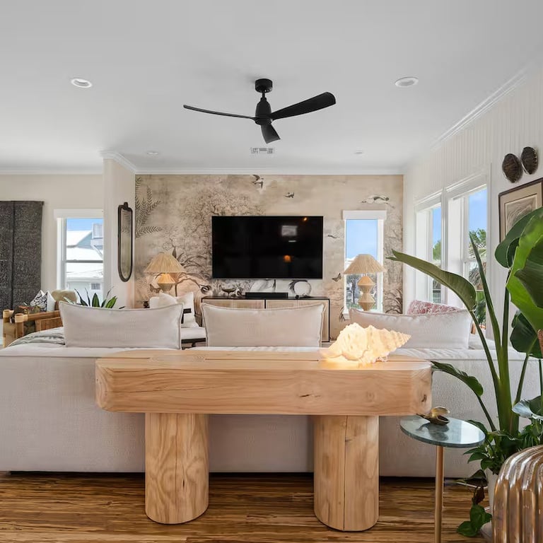 The Residence: Designed as a global masterpiece, the interior is adorned with curated art and unique décor from around the world. The expansive layout features 5 spacious bedrooms and 3.5 baths, thoughtfully divided into two full kitchens and two distinct living areas, providing ample room for large families or groups to spread out in comfort.