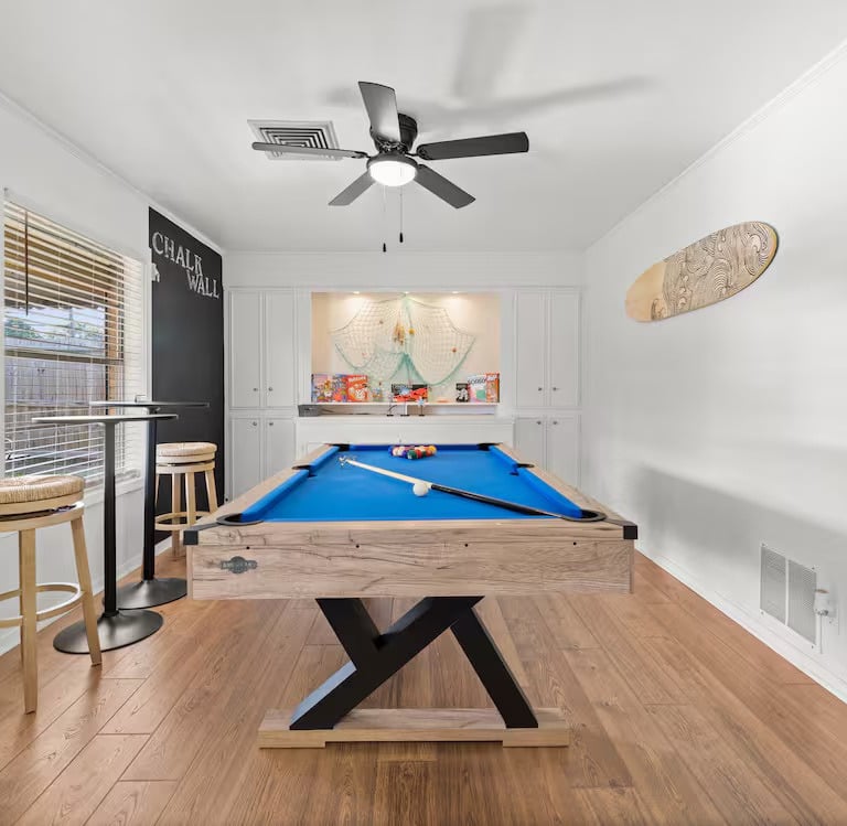 Discover the ultimate getaway in the heart of Corpus Christi. This expansive residence is strategically located minutes from the city’s top attractions, including the USS Lexington, Del Mar College, the Selena Memorial, and pristine Gulf beaches. Designed for groups and families seeking a fun, high-energy stay, this home blends a premier location with unmatched onsite entertainment.